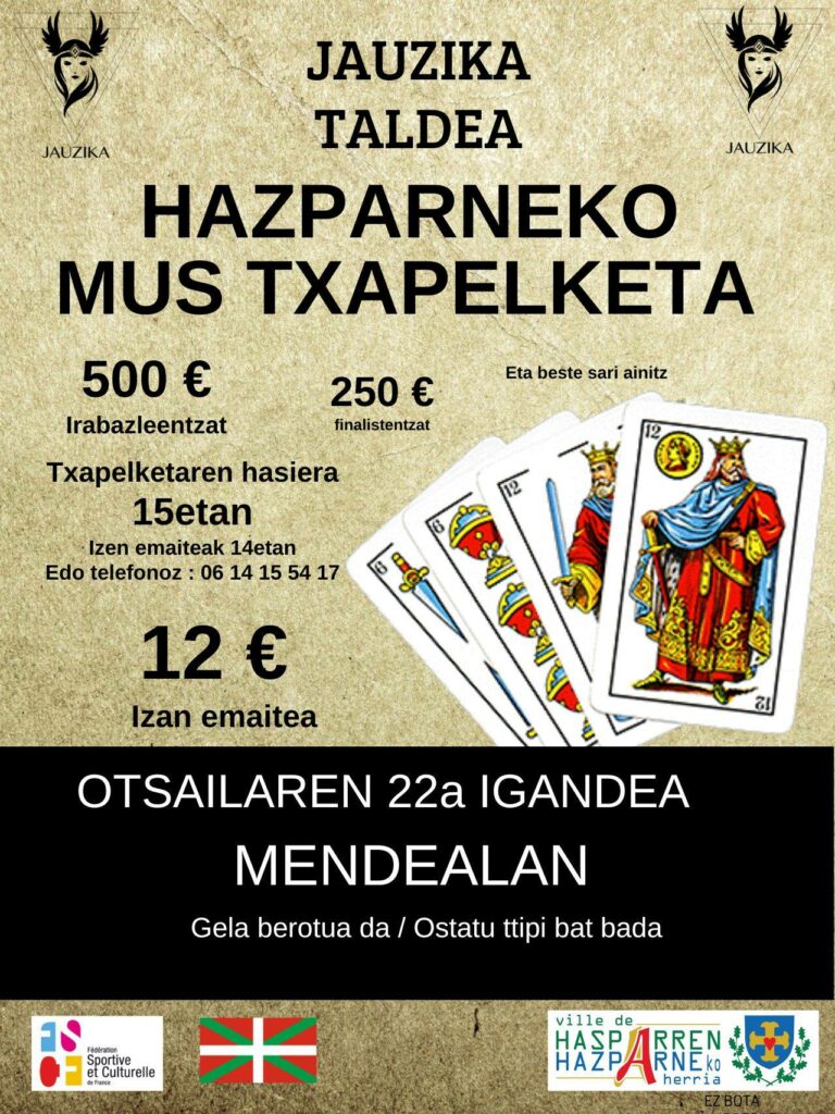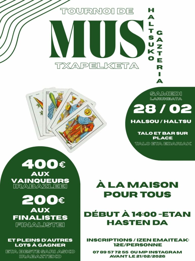 Notre objectif est de rendre le jeu de Mus plus visible. Ce nouveau site web que nous avons créé vise à rassembler tous les tournois de Mus, qu’ils se déroulent au Pays basque ou dans le monde entier. Nous souhaitons ainsi renforcer la promotion de ce jeu. La passion des joueurs de Mus mérite une plus grande place dans la société !